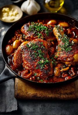 Pour des cuisses de poulet parfaitement dorées et moelleuses, commencez par les assaisonner généreusement. Le paprika fumé, en particulier, ajoute une saveur chaude et une belle couleur. La clé est de les faire dorer à feu vif avant de les incorporer à la casserole. Cela crée une croûte savoureuse qui emprisonne les jus du poulet, garantissant qu’il reste tendre et humide pendant la longue cuisson au four. Ne sautez jamais cette étape de dorage, elle est cruciale pour la saveur et la texture du poulet. Assurez-vous également de choisir des cuisses désossées et sans peau pour une consommation plus agréable et une cuisson plus uniforme.